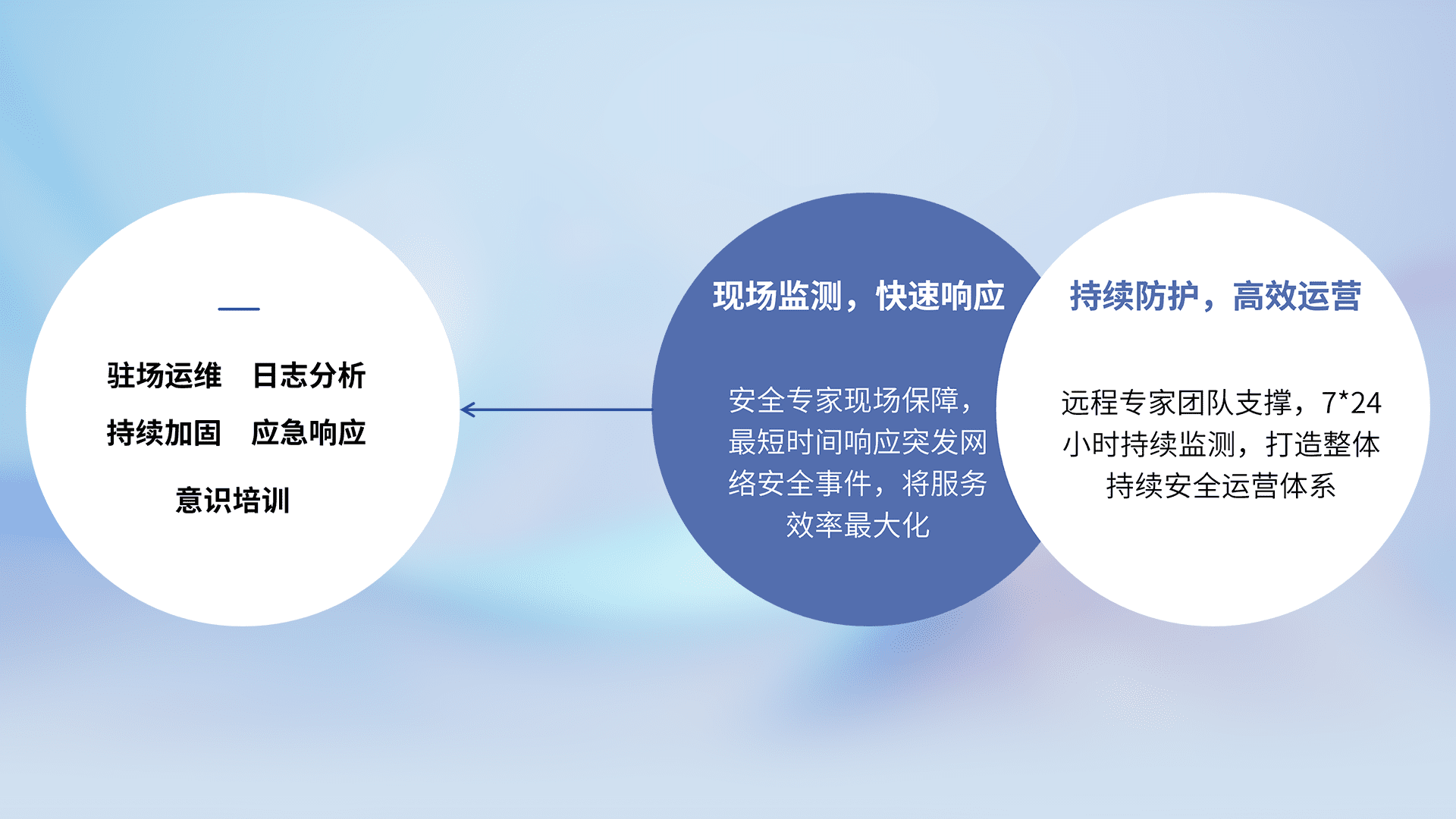 7X24小时持续监测安全事件,保持安全策略有效性,降低资产脆弱性风险,,,精准拦截黑客攻击,,减少被黑客利用的机会,,,,第一时间遏制,,,,降低损失。。